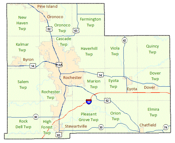 Olmsted County is located in Southeastern Minnesota and was established on February 20, 1855 by the Territorial Legislature. Olmsted County is named for St. Paul newspaper owner and Mayor (1854) David Olmsted. Rochester is the county seat. Source: Minnesota Geographic Names, by Warren Upham (Minnesota Historical Society, 1969).