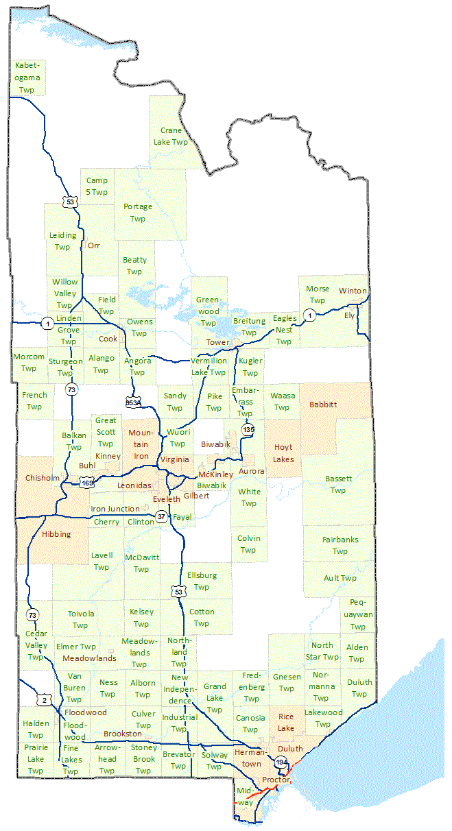 Saint Louis County is located in Northeast Minnesota along the Ontario border and was established on February 20, 1855 (as Doty County, changing its name to Newton County on March 3, 1855). On March 1, 1856, Newton County was renamed Saint Louis County. Saint Louis County is named for the Saint Louis River which flows through the southeast corner of the county into Lake Superior. Duluth is the county seat. Sources: Saint Louis County website. Minnesota Geographic Names, by Warren Upham (Minnesota Historical Society, 1969).